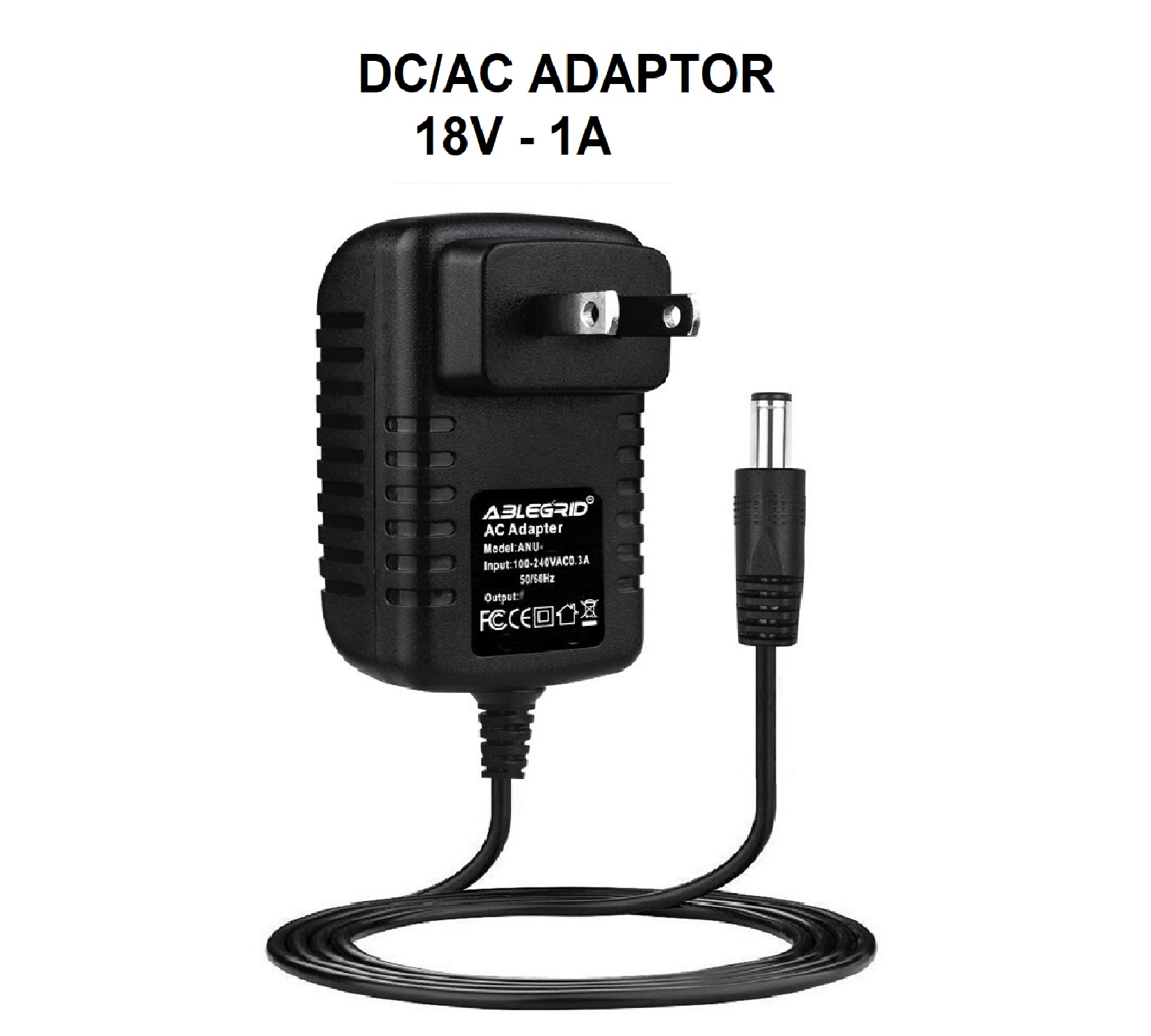 • Salida: DC 18V 1A, entrada: CA 100V-240V (50 ~ 60Hz), tamaño del enchufe del barril: 0.217 in x 0.083 in (aplicable 0.098 in), positivo interno (+), negativo exterior (-)