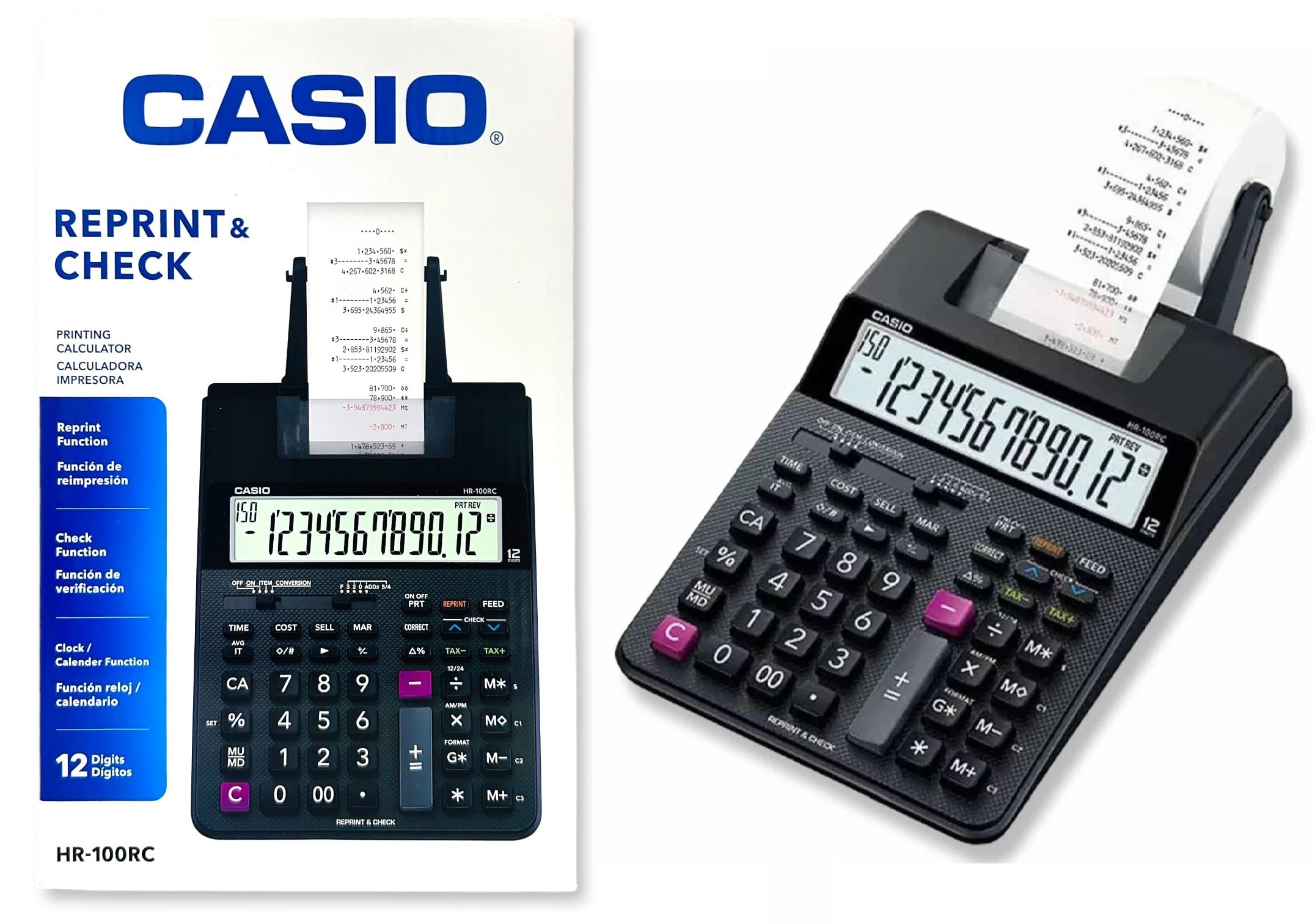 calculadora sumadora casio hr 100rc 12 dígitos Impresión de 2,0 líneas por segundo El valor indica el número de líneas impresas por segundo Impresión en 2 colores Los valores positivos se imprimen en negro y los valores negativos se imprimen en color rojo para una fácil comprensión Cálculos de porcentaje regular Aumentos y rebajas Todas las capacidades de marcado hacia arriba y marcado hacia abajo de una máquina sumadora para cálculos de costo simplificado y de ganancia Pulsación simultánea de teclas Las operaciones se almacenan en un búfer, así nada se pierde ni durante los ingresos de alta velocidad Pantalla extra grande La pantalla más grande hace que los datos sean más fáciles de leer Teclas plásticas Diseñadas y preparadas para ser de uso fácil Función de impuestos y cambio de divisas Funciones de cálculo de impuestos y conversión de moneda.